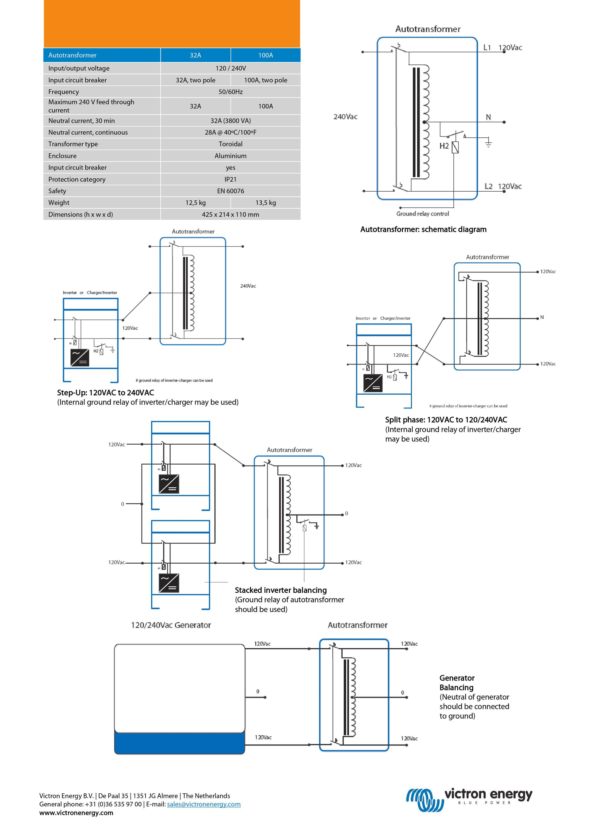 An autotransformer can be used for step up, step down and split phase output balancing purposes. While the step up and step down functions are fairly straightforward, split phase output balancing may require some more attention.